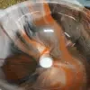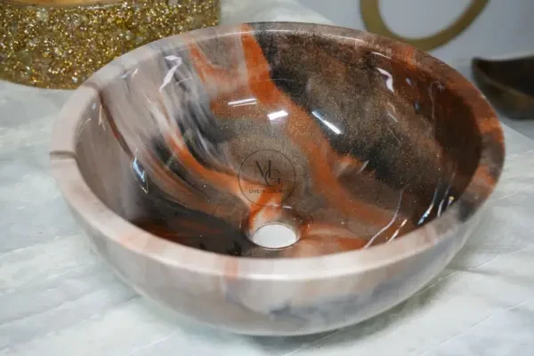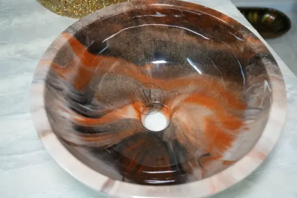 Liquid Marble Aesthetic: Each basin features a unique, hand-poured pattern of vibrant orange, black, and white swirls that mimic the look of natural flowing marble.