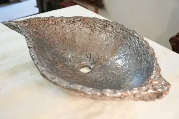 The Silver Leaf washbasin by Majestics Group is a sculptural masterpiece that brings the delicate geometry of nature into the modern home. Inspired by the elongated form of a falling leaf, this vessel sink features a dramatic pointed silhouette and a highly textured metallic finish. Handcrafted in our Istanbul studio, it embodies our commitment to merging luxury art with organic elements.